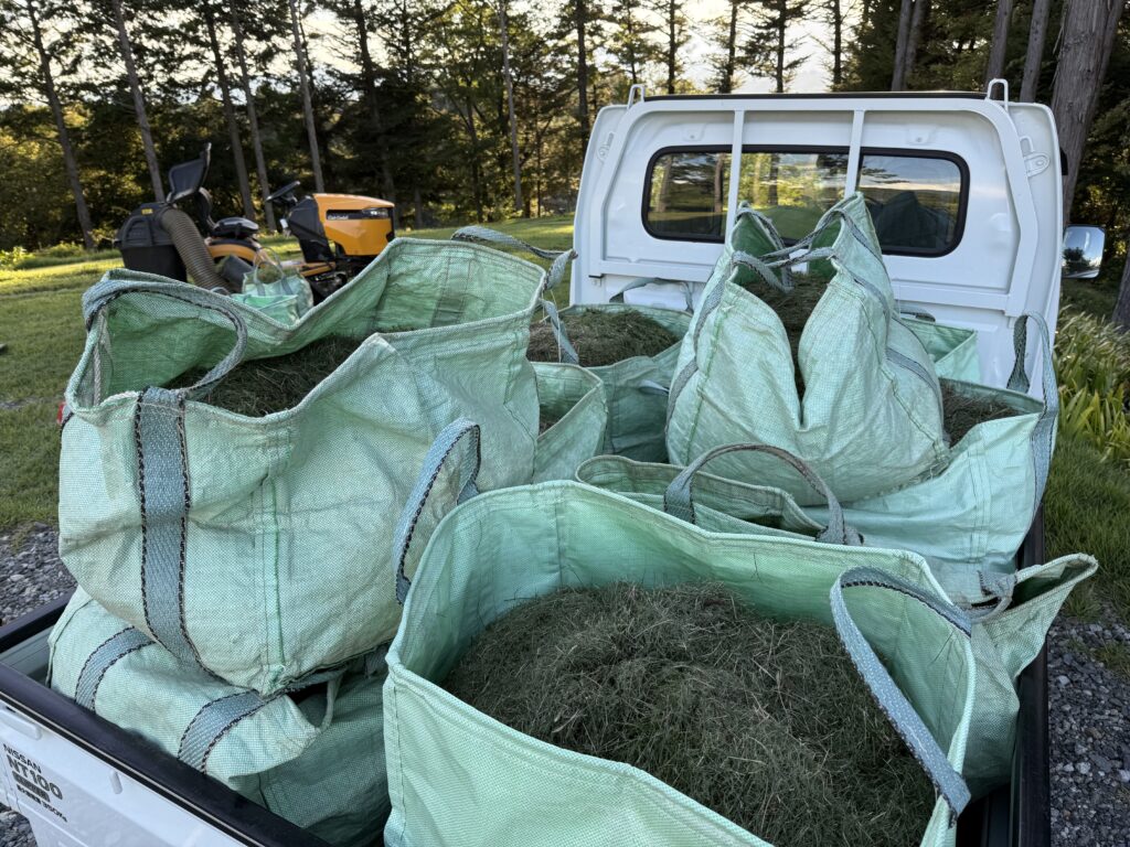 やっと猛暑も収まり芝を短くしても枯れない時期になりましたので芝刈りをしました。夏の間は伸ばしていましたのでかなりの量になりました。